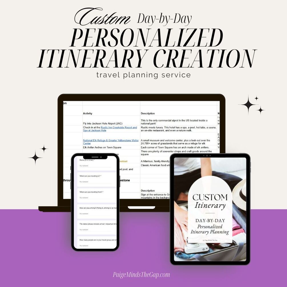 - In-depth Google Sheet itinerary created for the number of days you book (selected under Quantity)